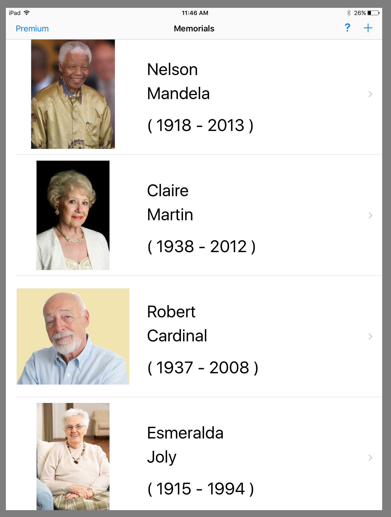 The free version of Memorial Holder includes all the documented features but allows you to create a single memorial. To create more memorials, you must purchase the premium version via the integrated purchase command of the application.