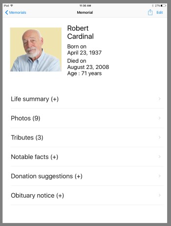 - Memorials are personal. They are stored on your iPhone or iPad, not on a remote internet server